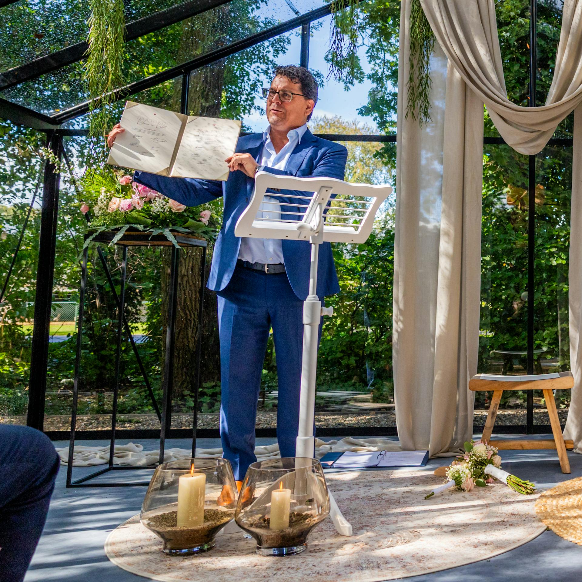 Bij mij kunnen jullie alleen terecht voor een ceremoniële huwelijksvoltrekking of voor het herbevestigen van jullie liefde ook wel "trouwgeloftes hernieuwen" genoemd.