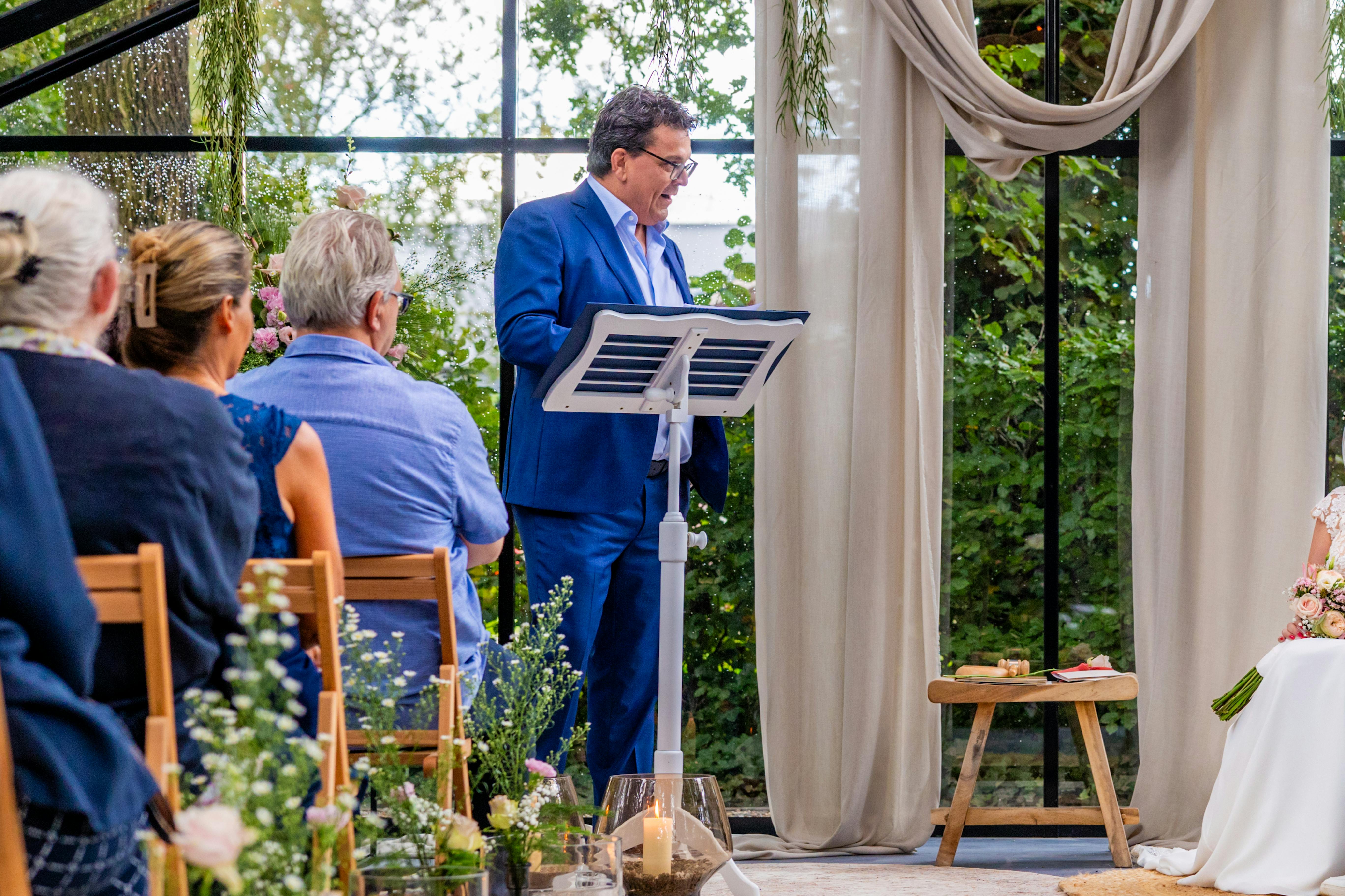 Willen jullie dat lieve vrienden of familieleden ook een rol krijgen? Wie zijn dat en hoeveel speeches willen jullie? Uiteraard help ik jullie ook dit avontuur op de juiste wijze vorm te geven. Is er een keus gemaakt, dan neem ik contact met die personen op, om hun verhalen te horen. Soms spreek ik ze telefonisch, soms vullen ze een vragenlijstje in en delen hun kant van het verhaal. Dit levert vaak geweldig mooie verhalen op. Ook besteden we aandacht aan personen die jullie wellicht moeten missen op de dag van jullie leven. Een ceremonie met een lach en een traan is een geslaagde ceremonie. Jullie bepalen samen met mij de inhoud van het verhaal. Het wordt sowieso een verhaal dat raakt.